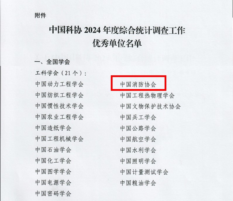 中國消防協(xié)會(huì )獲評中國科協(xié)2024年度綜合統計調查工作優(yōu)秀單位