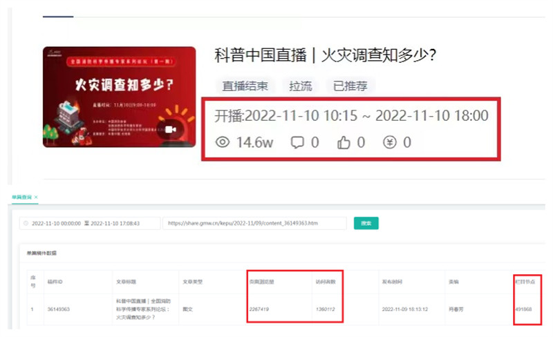 12位專(zhuān)家采取報告與交流相穿插,實(shí)踐與思考相結合,學(xué)術(shù)與成果共展示的方式,圍繞不同類(lèi)型的火災分析,不同技術(shù)的火調應用展開(kāi)了精彩報告,從不同的視角展示了火災調查工作的作用、現狀、技術(shù)前沿以及未來(lái)發(fā)展方向。同時(shí),各位專(zhuān)家也針對觀(guān)看直播人員的提問(wèn)進(jìn)行在線(xiàn)解答與交流,現場(chǎng)討論氛圍十分熱烈,此次科普直播在各大平臺引起廣泛關(guān)注,瀏覽、觀(guān)看、參與話(huà)題人員突破500萬(wàn)。