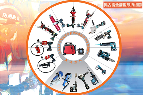 奧古雷電動(dòng)破拆工具組整套工具12+件的配置,涵蓋破拆工具所有性能。兼具車(chē)輛破拆功能、車(chē)地震塌方救援、城市綜合應急救援,電動(dòng)化+輕量化+小型化+多功能化,真正做到了符合中國特色的破拆救援工具。