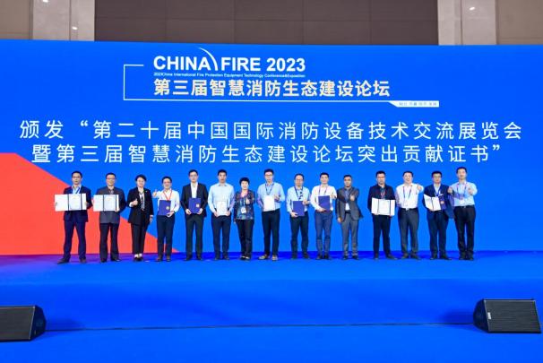 本屆論壇由中國消防協(xié)會(huì )主辦,蘇州國網(wǎng)電子科技有限公司、北京泰普瑞認證服務(wù)有限公司、北京伊思諾會(huì )展服務(wù)有限公司承辦。北京泰普瑞認證服務(wù)有限公司聯(lián)合19家從業(yè)企業(yè)發(fā)出了智慧消防生態(tài)建設倡議書(shū),共同登臺舉行了聯(lián)名簽署儀式。主辦方有關(guān)業(yè)務(wù)負責人為安普科技有限公司、杭州昱安科技有限公司、南京六域知物科技有限公司、青島同人建筑防火有限公司、上海瑞眼科技有限公司、蘇州思迪信息技術(shù)有限公司、蘇州易觀(guān)黑洞智能科技有限公司、武漢拓寶科技股份有限公司、陜西拓普索爾電子科技有限責任公司、上海盛善電氣有限公司、廣州創(chuàng )宏信息科技有限公司、北京泰普瑞消防技術(shù)研究院、蘇州國網(wǎng)電子科技有限公司、歐普照明股份有限公司、大疆行業(yè)應用、深圳市海明科信息技術(shù)有限公司、浙江中辰城市應急服務(wù)管理有限公司、中安工業(yè)互聯(lián)網(wǎng)(成都)有限公司、北京伊思諾會(huì )展服務(wù)有限公司等19家企業(yè)頒發(fā)了突出貢獻證書(shū)。