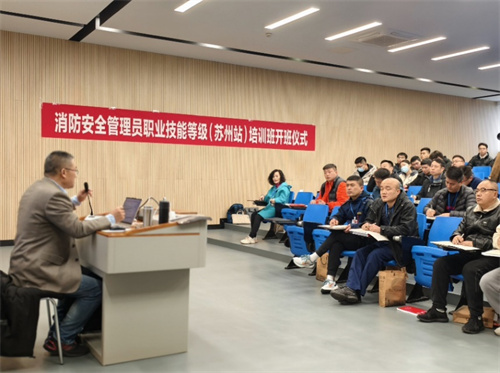 2024年3月11日,由中國消防協(xié)會(huì )城市軌道交通消防安全專(zhuān)業(yè)委會(huì )申請建設的消防安全管理員職業(yè)技能等級蘇州認定站,開(kāi)展首期職業(yè)技能等級培訓及認定工作。來(lái)自蘇州市機關(guān)、企事業(yè)單位從事消防安全管理崗位的30余名學(xué)員參加本期培訓學(xué)習認定。蘇州認定站是繼徐州認定站之后,城市軌道交通消防安全專(zhuān)業(yè)委會(huì )申請建設的第二個(gè)消防安全管理員職業(yè)技能等級認定站。
