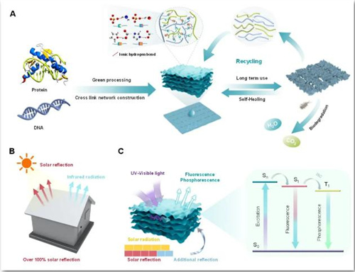 全球氣候變化和城市化加速進(jìn)程導致了嚴重的能源、環(huán)境和安全問(wèn)題。低碳、低能耗的被動(dòng)輻射冷卻技術(shù)是解決全球變暖的一種有前景的熱管理策略。傳統的石油化工產(chǎn)品制備的輻射冷卻材料往往存在制冷效率低、環(huán)境友好性差等問(wèn)題。