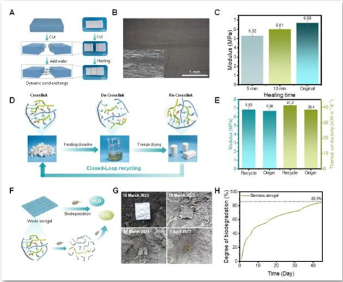 圖2 GE-DNA氣凝膠的自修復、循環(huán)回收和可生物降解性能