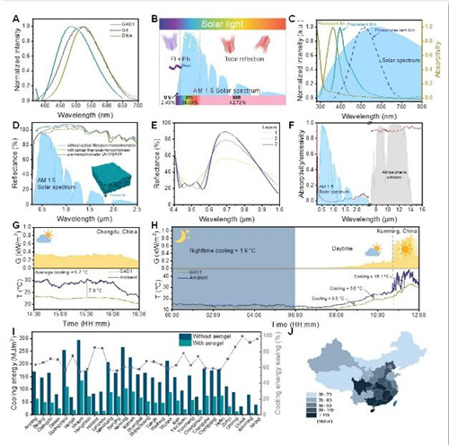 圖3 GE-DNA氣凝膠的輻射冷卻機制與制冷效率