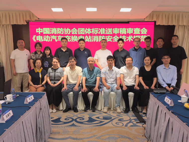 2025年6月13日,中國消防協(xié)會(huì )在北京組織召開(kāi)團體標準《電動(dòng)汽車(chē)充換電站消防安全技術(shù)規范》送審稿審查會(huì ),來(lái)自科研機構、高等院校和設計單位的9名專(zhuān)家組成審查專(zhuān)家組,原中國人民武裝警察部隊學(xué)院陳南教授擔任專(zhuān)家組組長(cháng),編制組成員單位66名代表參會(huì )。