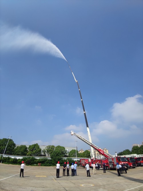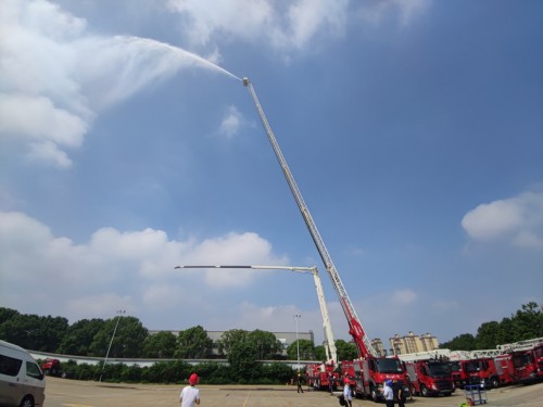 專(zhuān)家組首先聽(tīng)取了成果介紹,對產(chǎn)品進(jìn)行現場(chǎng)測試,審查技術(shù)文件,并進(jìn)行了技術(shù)質(zhì)詢(xún)?,F場(chǎng)測試過(guò)程中,專(zhuān)家組測試了60米云梯消防車(chē)和80米舉高噴射消防車(chē)的舉升動(dòng)作性能和射水性能,充分驗證了舉高噴射消防車(chē)罐供水、外供水、耦合供水等三種供水模式下噴射高度、射程等關(guān)鍵指標參數。