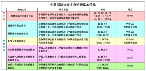 本屆展會(huì )安排了“智慧消防生態(tài)建設”主論壇,以及“建筑消防安全”等6個(gè)專(zhuān)業(yè)論壇,詳見(jiàn)下表。有意參加論壇、了解消防救援技術(shù)、消防科技發(fā)展動(dòng)態(tài)和消防產(chǎn)業(yè)發(fā)展動(dòng)向的觀(guān)眾,請根據論壇的具體安排,綜合考慮觀(guān)展和參加論壇的時(shí)間少跑一趟,多一些收獲。受場(chǎng)地限制,論壇容納人員有限,敬請按照有關(guān)通知和邀請的提示,提前注冊預約留座。