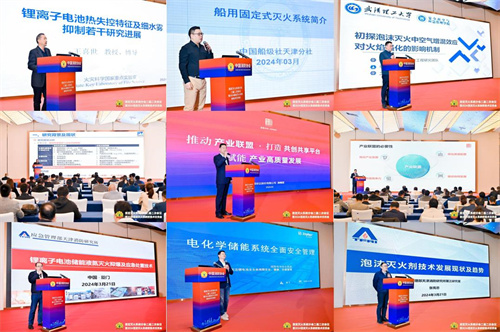 在隨后召開(kāi)的2024固定滅火系統新技術(shù)交流會(huì )上,中國科學(xué)技術(shù)大學(xué)王喜世教授、中國船級社天津分社產(chǎn)品處趙長(cháng)斌副處長(cháng)、武漢理工大學(xué)李開(kāi)源教授、天津消防研究所董海斌研究員、國安達股份有限公司董事長(cháng)洪偉藝高工、天津消防研究所張憲忠副研究員、哲弗智能系統(上海)有限公司李飛董事長(cháng)分別作了《鋰離子電池熱失控特征及細水霧抑制若干研究進(jìn)展》《船用固定滅火系統簡(jiǎn)介》《初探泡沫滅火中空氣增混效應對火焰強化的影響機制》《鋰離子電池儲能液氮滅火抑爆及應急處置技術(shù)》《推動(dòng)產(chǎn)業(yè)聯(lián)盟 打造共創(chuàng )共享平臺 賦能產(chǎn)業(yè)高質(zhì)量發(fā)展》《泡沫滅火劑技術(shù)發(fā)展現狀及趨勢》《電化學(xué)儲能系統全面安全管理》的報告。